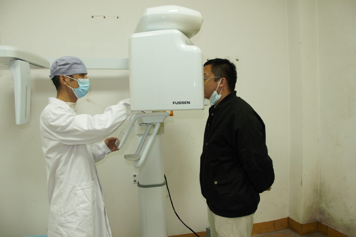中交集团向贡山县人民医院捐赠价值48.3万元的口腔CT机。医务人员正在用口腔CT机为患者做检查