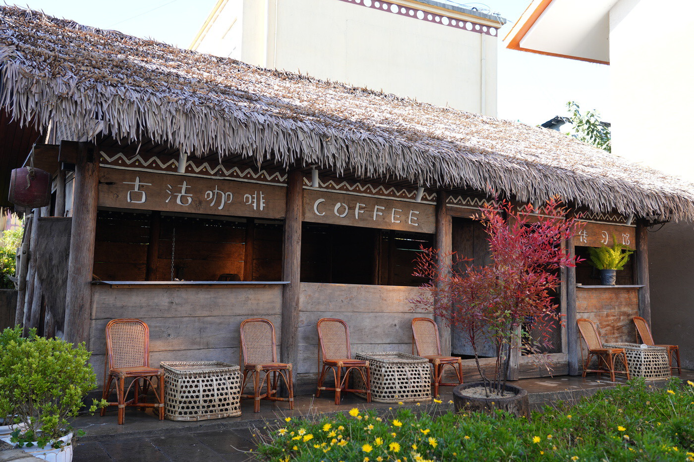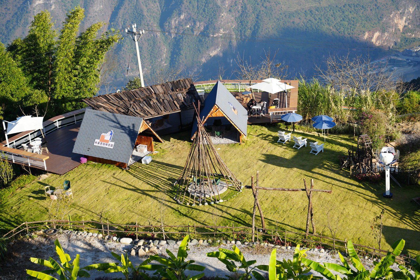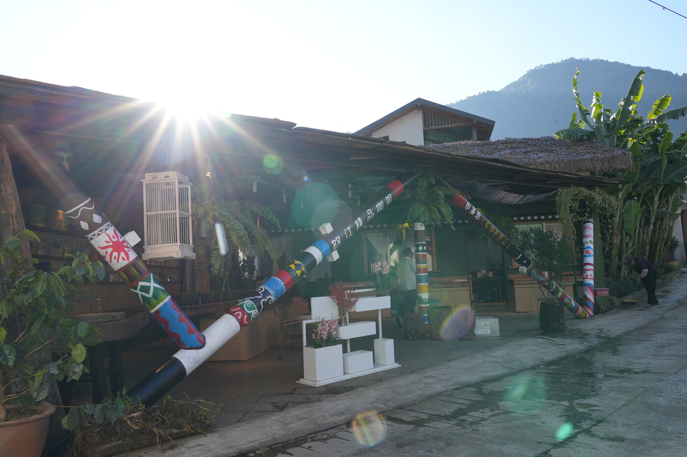 冬日在怒江边布莱恩咖啡庄园喝咖啡的顾客。