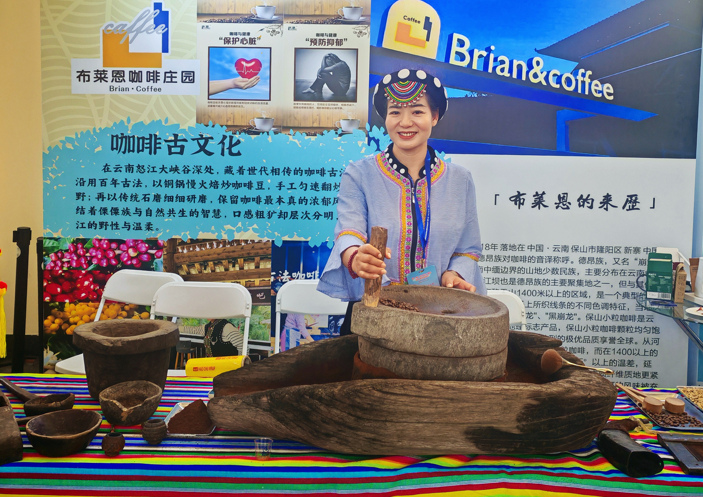 胡玉兰参加推介会,展示古法咖啡和怒江傈僳族老物件。